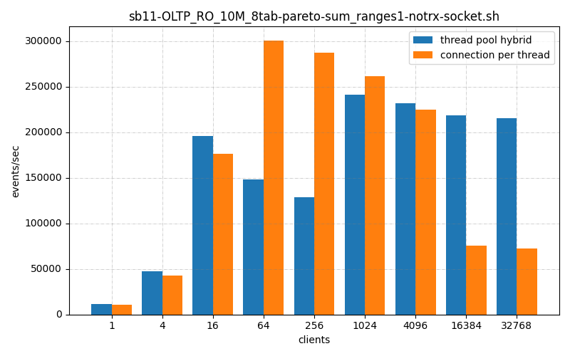 I’ve uploaded the latest code to the thread_pool_hybrid repo and the latest graphs thrustdb_benchmarks/thread_pool_hybrid-vs-connection_per_thread-mysql_8.0.4-ubuntu_24.04-on-r5.8xlarge.md