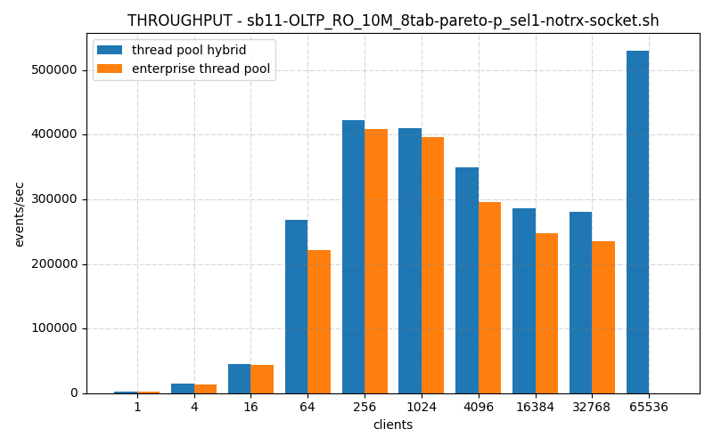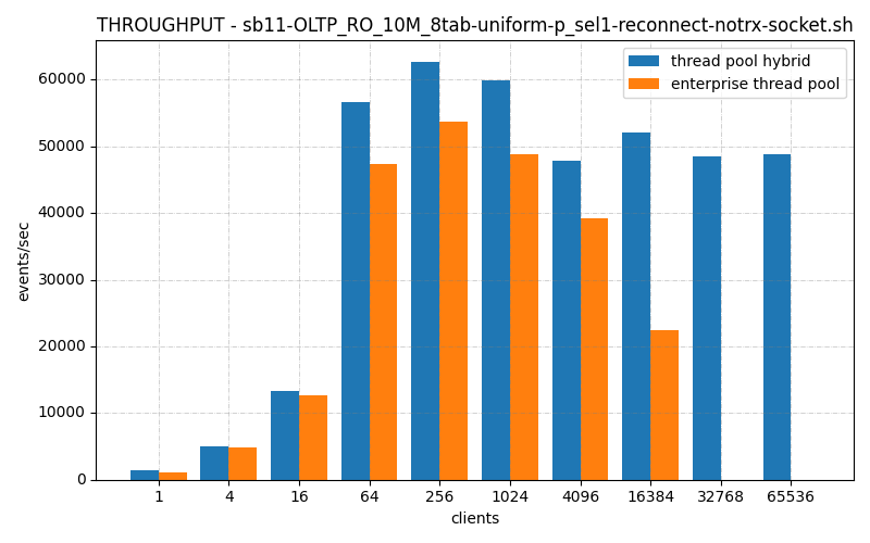 ThrustDB’s thread_pool_hybrid connection handler beats the MySQL Enterprise edition thread_pool across the board and is also significantly more scalable. See the graphs: thread_pool_hybrid_vs_enterprise_thread_pool-mysql-9.0.3-redhat_9.0.4-r7i.4xlarge.md
